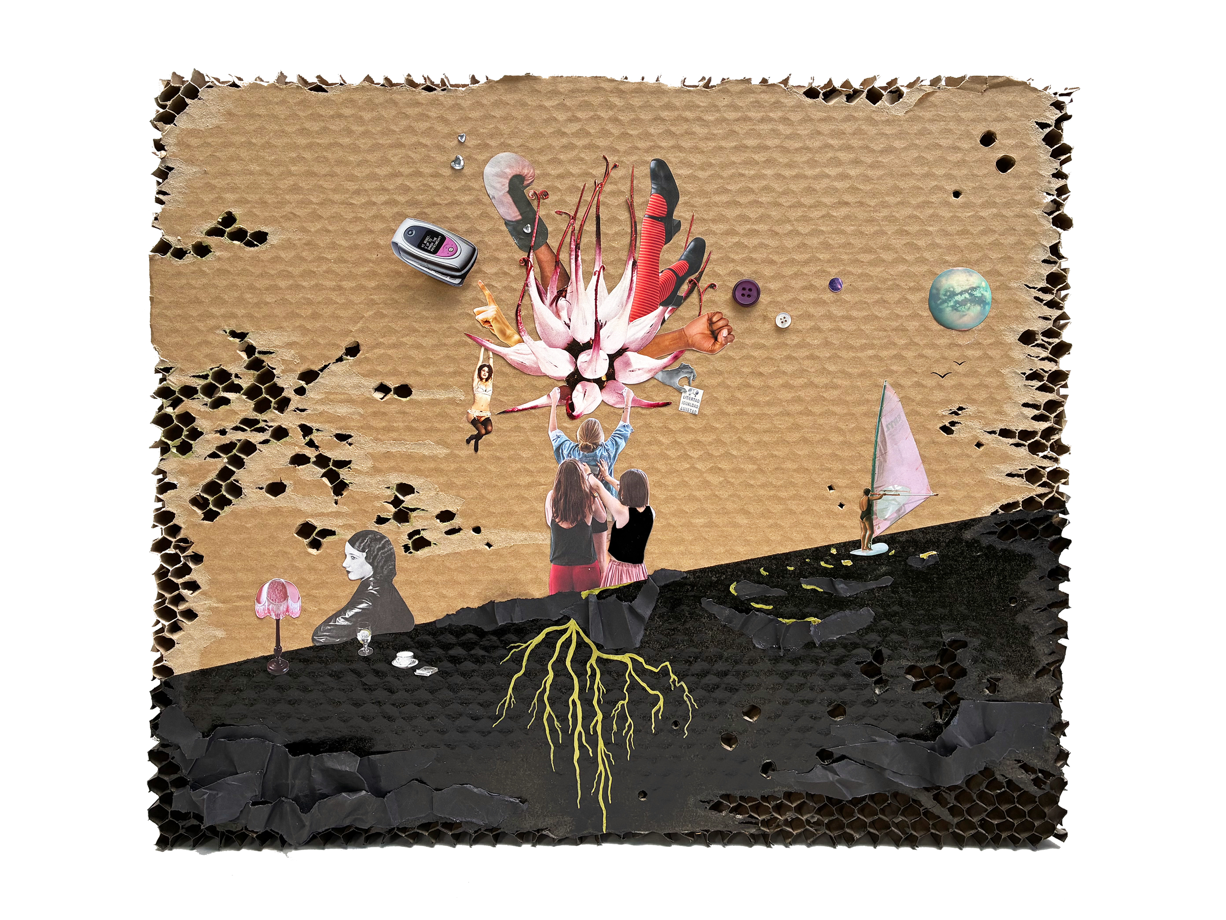 Lately, I’ve been visiting more FLINTA* spaces, and I notice how beautiful and powerful they are. They make me feel calm, strong, and hugged at the same time — and that gives me hope for a better future. That’s the feeling I wanted to carry into this collage: a positive view of feminism, about supporting each other, taking up space together, and imagining utopia not as something distant, but as something we can build together!